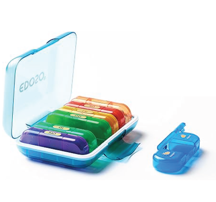 - BAREVNÉ NÁDOBY NA LÉKY – díky různým barvám lze snadno rozpoznat den v týdnu, což usnadňuje správné a každodenní užívání léků